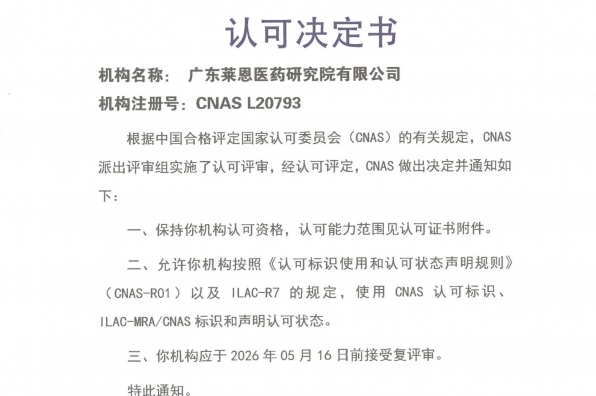 該研究中心以萊恩醫藥為依托單位,聯合廣東省生物資源應用研究所組建而成,并于2018年通過廣東省科技廳驗收,主要以創新藥物評價與研究為核心,通過研究開發、技術創新及促進成果轉化搭建多個藥物評價與研究關鍵技術體系及研發平臺。
